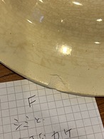 大きなダメージは見当たりませんが、小さなカケや傷、製造時についたと思われる凹凸・色むら等は製品によってあります。カトラリーあとは少なめです。