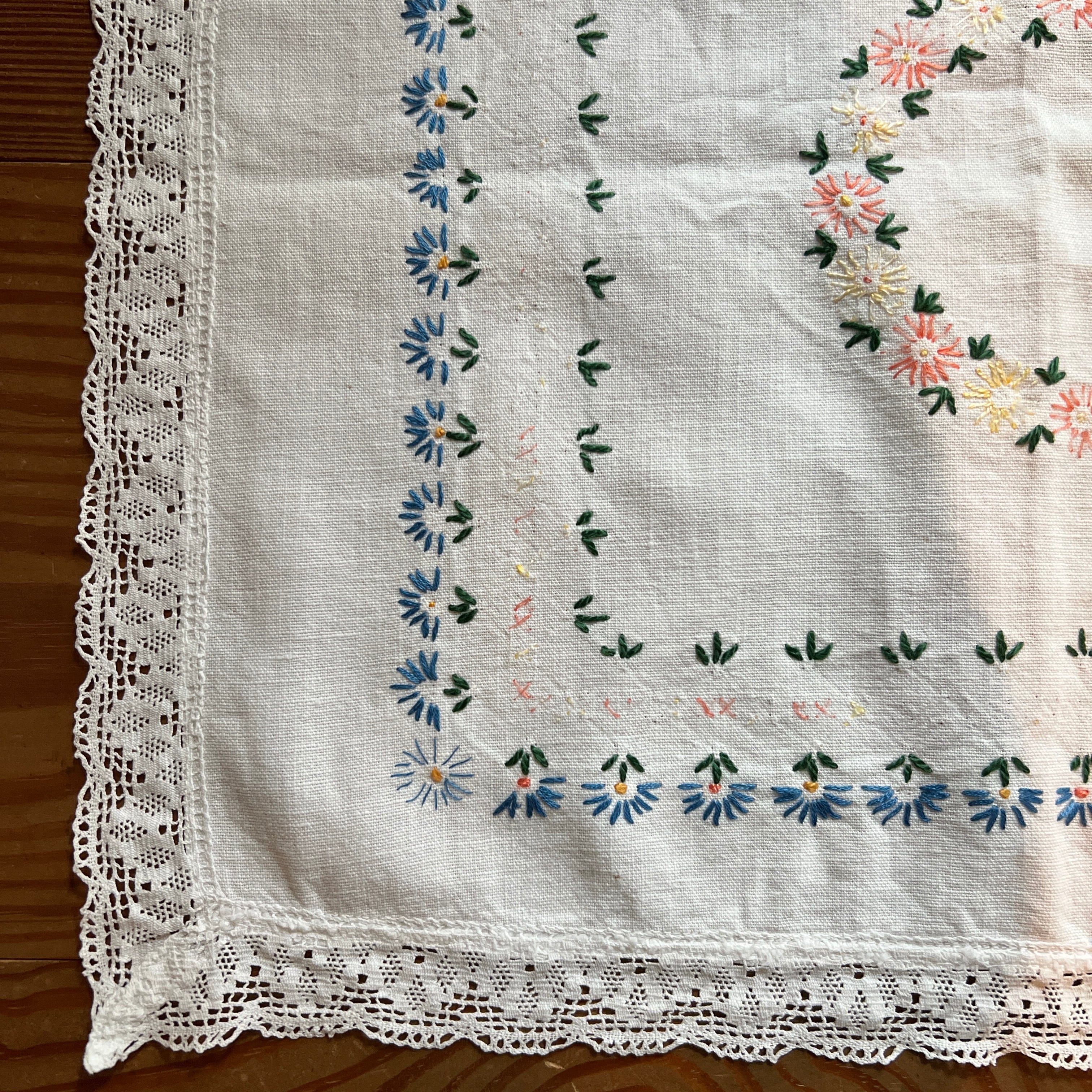刺繍入り レースのハンカチ フランスアンティーク ヴィンテージ
